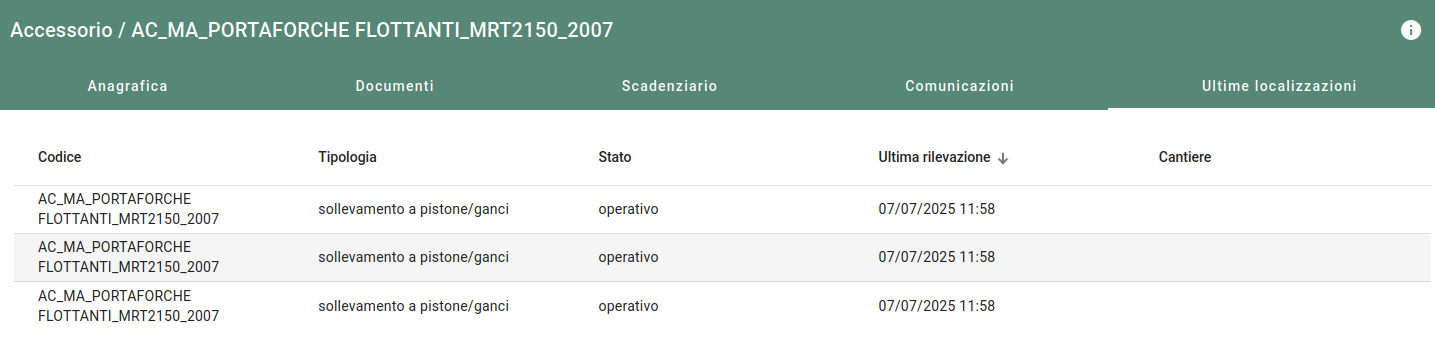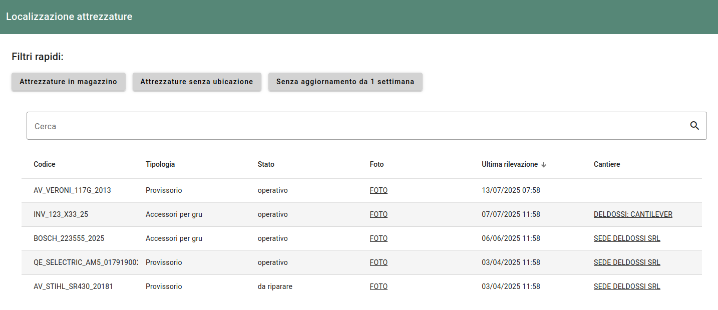 Grazie a un’app utilizzata nei cantieri, queste etichette vengono “scansionate” e la loro posizione viene prelevata da Enigma due volte al giorno: tramite la nostra logica andiamo adassociare i beni al cantiere corretto in base alle coordinate.